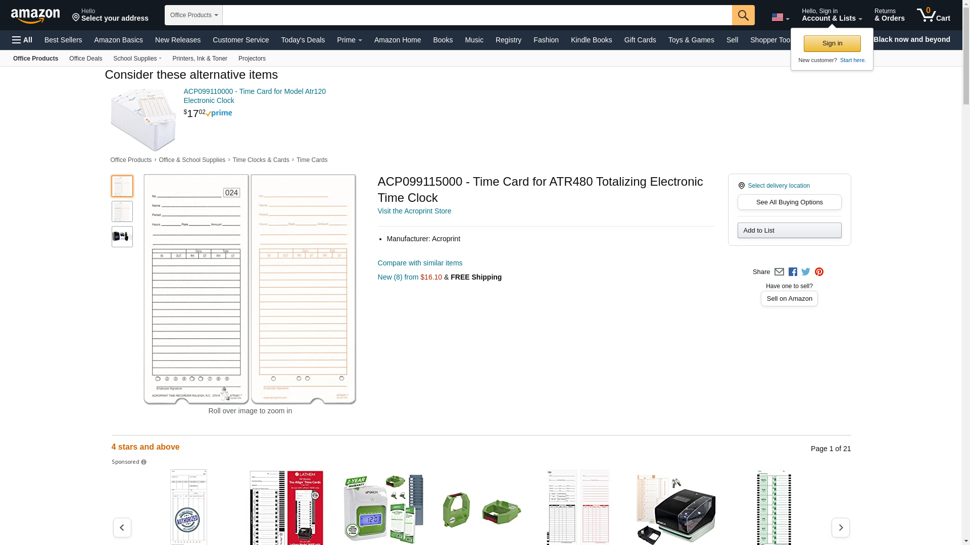 Acroprint® Time Card for ATR480 Totalizing Electronic Time Clock - Acroprint 99115000 PK - Betty Mills