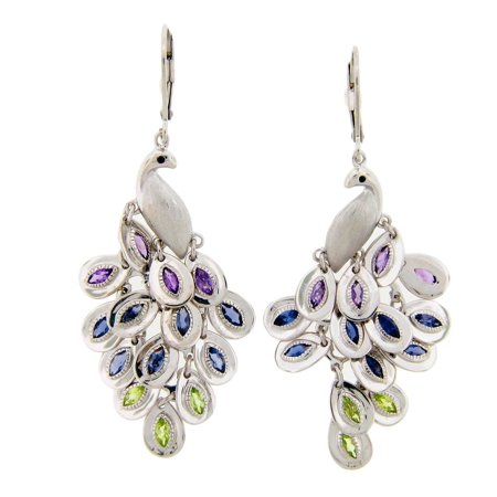 <ul> <li>Style: Dangle</li> <li>Gemstone colors: Purple, blue, green , black</li> <li>Gemstone shapes: Pear, round</li> </ul>