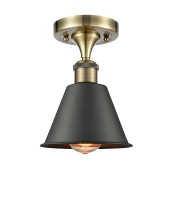 Innovations Lighting 516-1C-AB-M8-BK Smithfield - 1 Light Semi-Flush Mount in Industrial Style-9.5 Inches Tall and 7 Inches Wide, Choose Lamping Option: Incandescent, Shade Options: Matte Black Shade