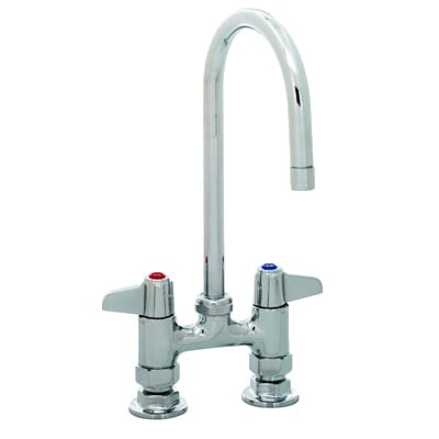 T&S Brass 5F-4DLX05 5F-4Dlx05, Faucet, Deck Mount, 4-Inch Centers, 5-1/2-Inch Swivel Gooseneck