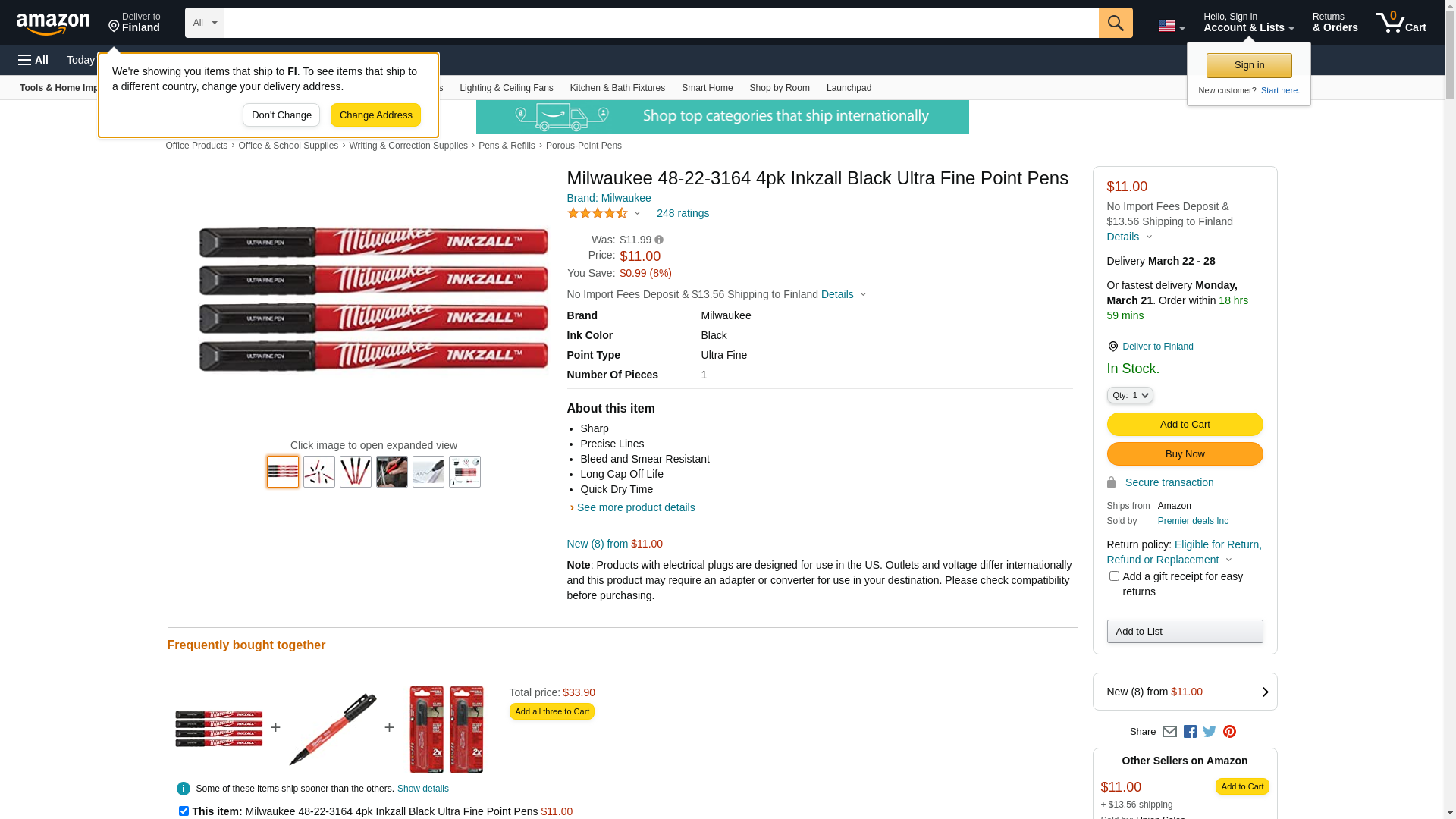 - Milwaukee PEN FINE POINT ULTRA BLACK 4PK 48-22-3164