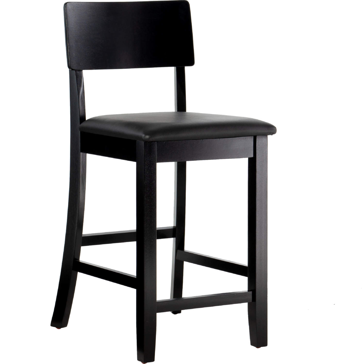 Linon 01854BLK-01-KD-U Torino 24" Counter Stool in Dark Brown Leatherette & Black Wood
