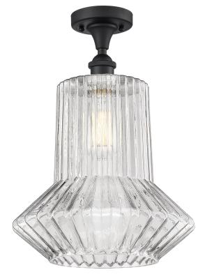 INNOVATIONS LIGHTING 516-1C-BK-G212 BALLSTON SPRINGWATER 12 INCH ONE LIGHT CLEAR SPIRAL FLUTED GLASS SEMI-FLUSH MOUNT...