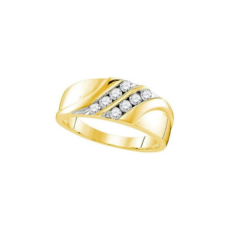<ul> <li>10kt Yellow Gold</li> <li>1/2 Carats total weight</li> <li>4.52 grams (approximately)</li> <li>Ring size selectable. All diamonds are natural and conflict-free in origin.</li> </ul>