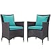 Convene Collection EEI-2188-EXP-TRQ-SET 2 PC Outdoor Patio Dining Set with Fabric Cushions, Water Resistant, Powder Coated Aluminum Frame and Synthetic Rattan Weave in Espresso and Turquoise Color