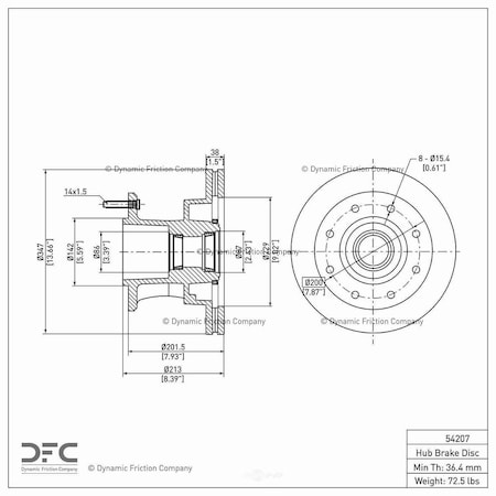 Dynamic Friction Company Front Disc Brake Rotor 600-54207 (1) For 2006-2010 Ford F-350 Super Duty