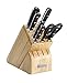 - 9-piece set includes 3-1/2-inch paring knife, 3-inch straight paring knife, 6-inch utility knife, 8-inch carving knife, 8-inch bread knife, 8-inch cook's knife, 9-inch honing steel, kitchen shears, and 13-slot storage block