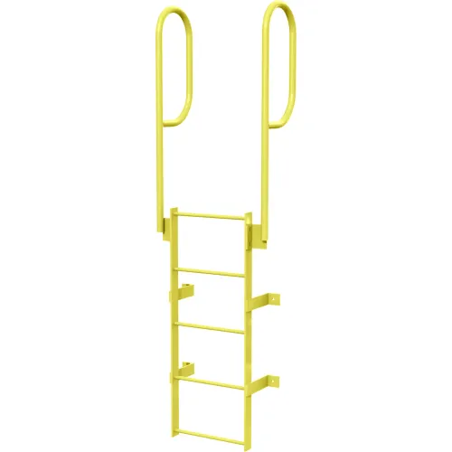 5 Step Steel Walk Through With Handrails Fixed Access Ladder, Yellow - WLFS0205-Y