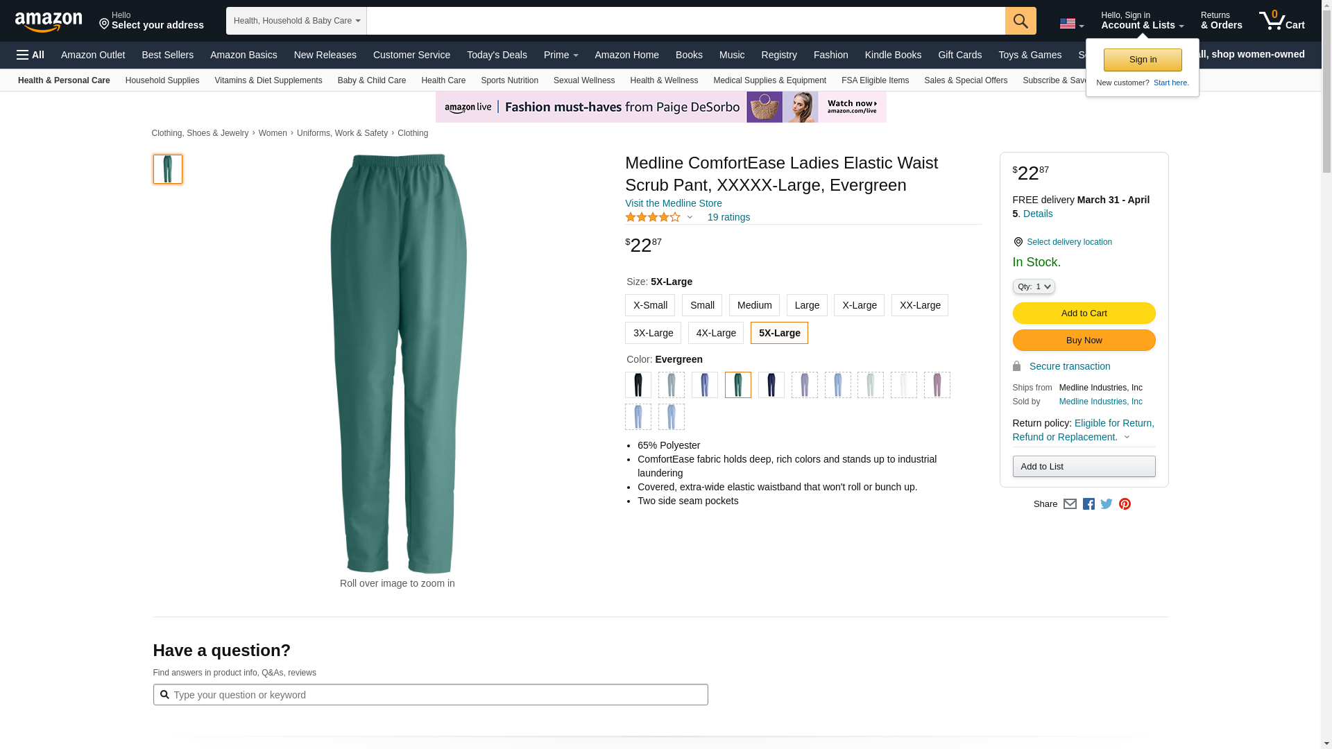 Medline 8850JEG5XL - PANT, SCRUB, LADIES, ELASTIC, 2PKT, EVGRN, 5XL, 24 EA/CS - CIA Medical