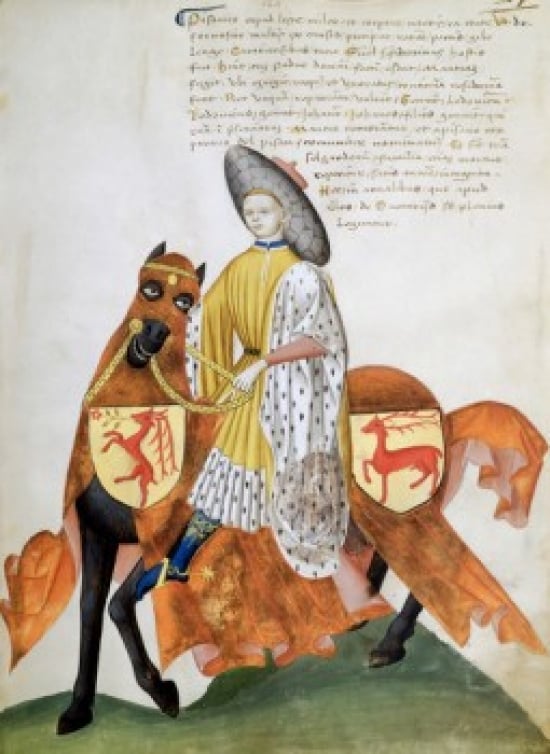 - Female Rider and Orange Horse Capodilista Codex Manuscript Illumination Biblioteca Civica Padua