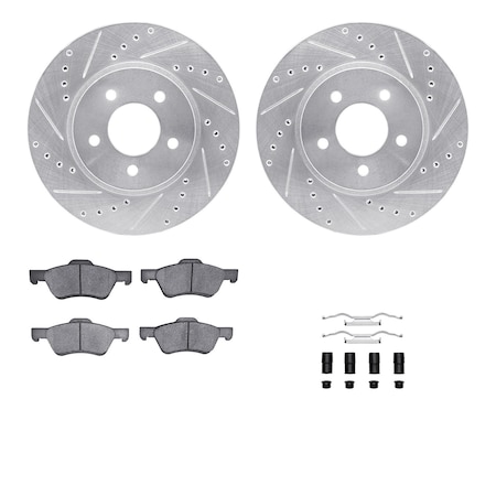 Dynamic Friction Company Front Brake Rotors Drilled and Slotted Silver with 5000 Advanced Brake Pads includes Hardware - 7512-54172