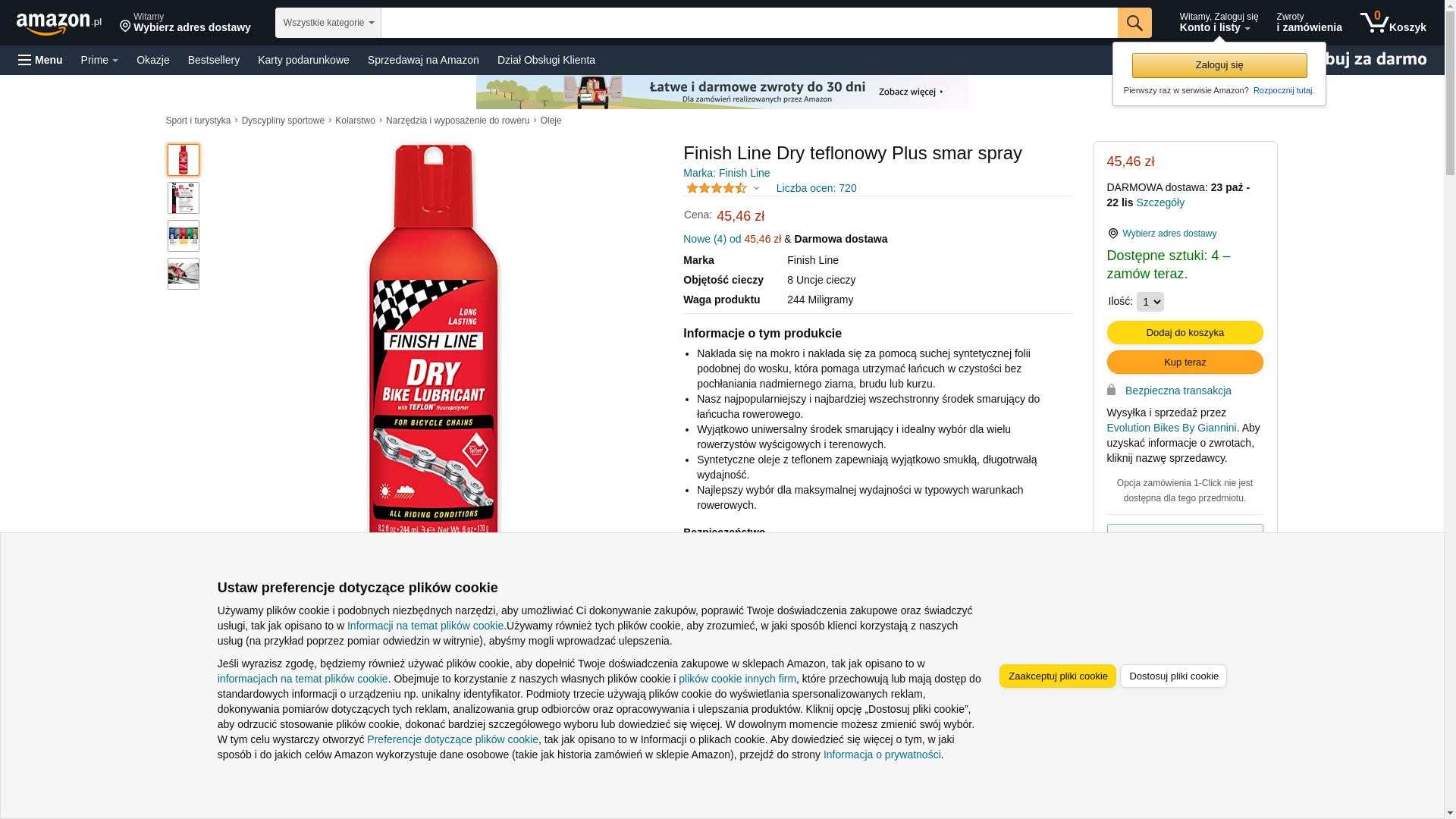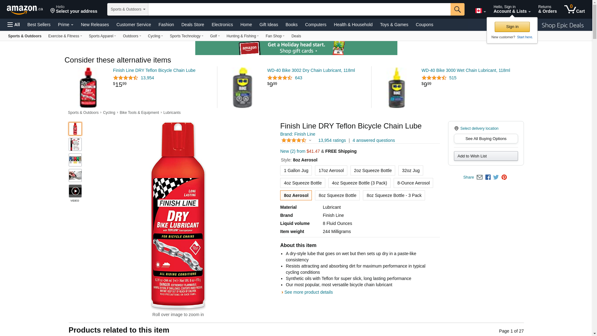 Finish Line Dry Bike Lubricant with Teflon (8-Ounce Aerosol)
