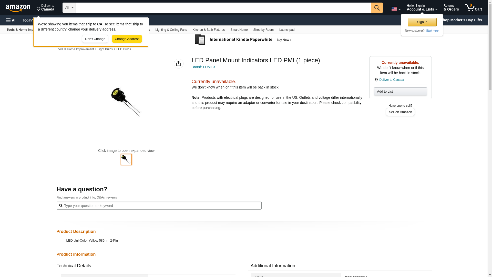 Lumex Panel Mount Indicator, Led, 7.94mm, Yellow, 2.1V - SSI-LXH387YD