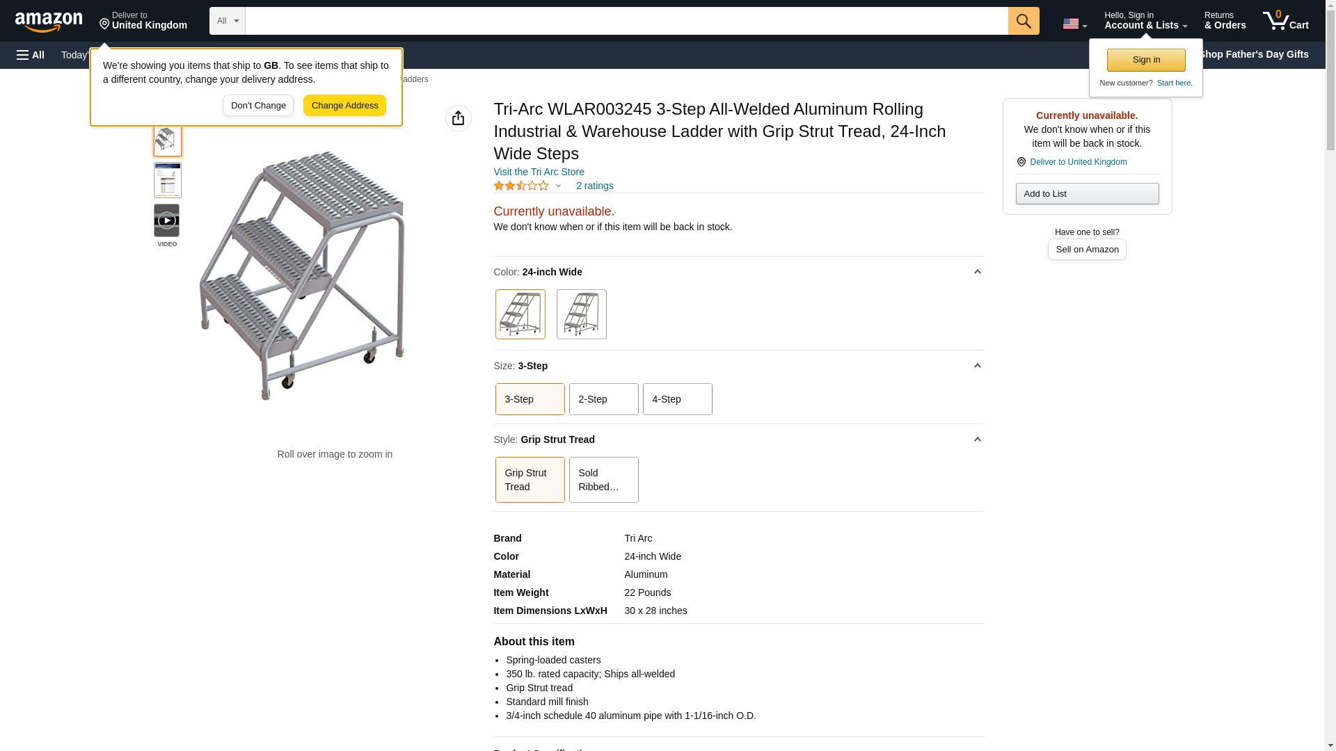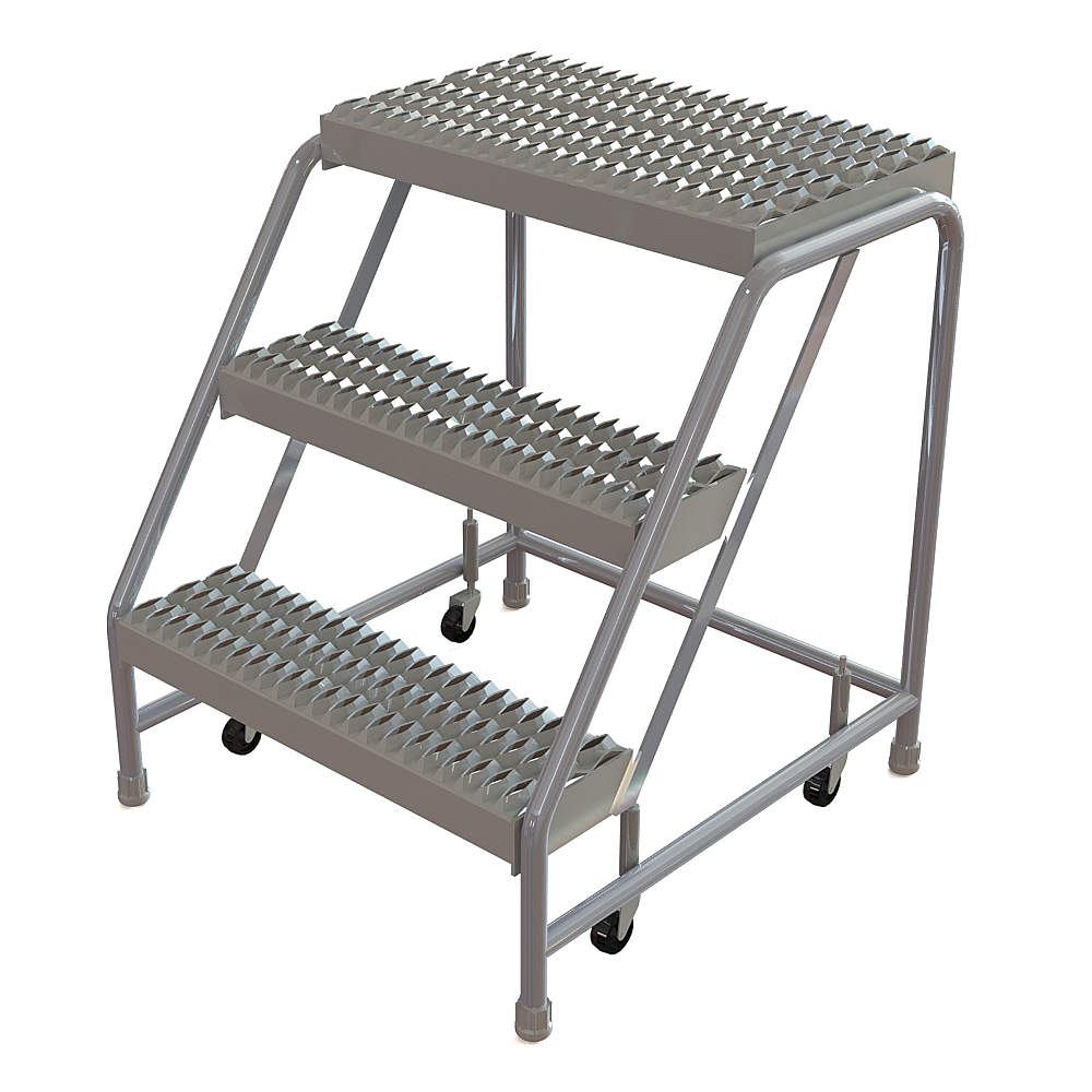Tri-Arc WLAR003245 3-Step All-Welded Aluminum Rolling Industrial & Warehouse Ladder with Grip Strut Tread, 24-Inch Wide Steps