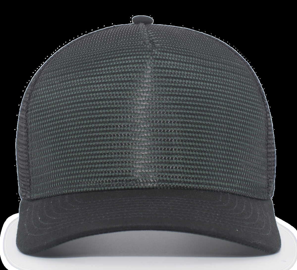 Pacific Headwear P724.429.OS 5-Panel Mesh Overlay Trucker Snapback Cap, Black & Dark Green - One Size