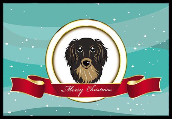 Carolines Treasures BB1523MAT Longhair Black And Tan Dachshund Merry Christmas Indoor & Outdoor Mat, 18 x 27 in.