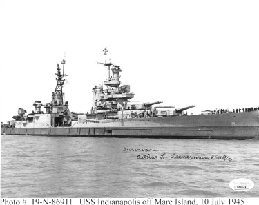 Athlon Sports CTBL-023826 Arthur Leenerman Signed Vintage 1945 USS Indianapolis CA-35 B&W 8 x 10 in. Photo Survivor- JSA