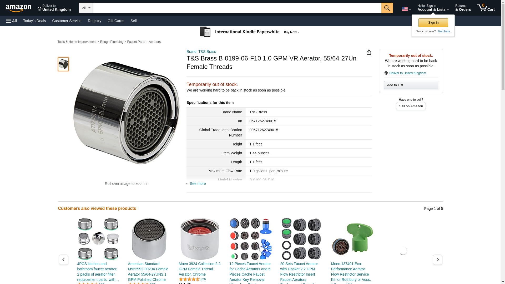 T&S Brass B-0199-06-F10 1.0 GPM VR Aerator, 55/64-27Un Female Threads