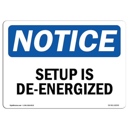 OSHA Notice Sign, Setup Is De-Energized, 14in X 10in Aluminum