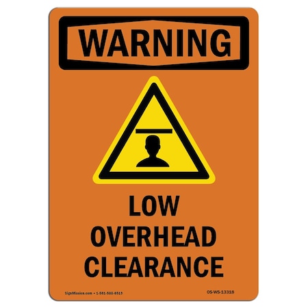 OSHA WARNING Sign, Low Overhead Clearance W/ Symbol, 24in X 18in Aluminum