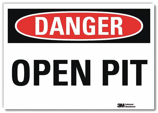 Smartsign U3-1883-RD_14X10"DANGER OPEN PIT" Reflective Self-Adhesive Decal, 14" x 10"