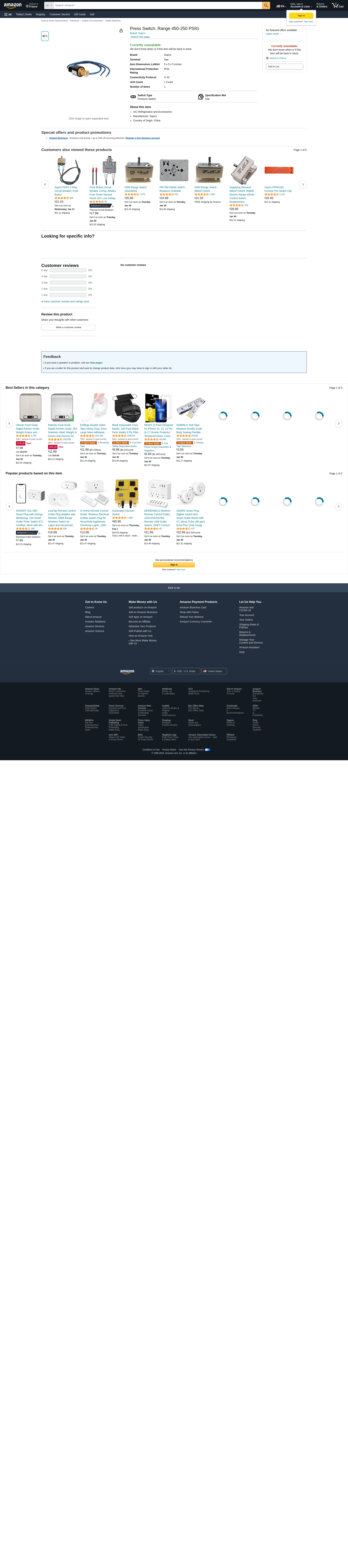 | Feature | Price For: Each Switch Action: Opens On High Pressure Range (PSI): 0-650 Switch Type: SPST Differential Pressure (PSI): +/- 15 Item: High Pressure Switch Mounting: Direct Pressure Connection: 1/4" Female SAE Close (PSI): 250 Open (PSI): 450 Country of Origin (subject to change): China |