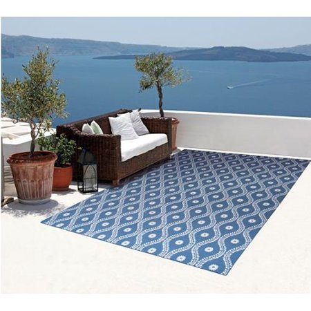 Add some excitement to any surrounding with these magnificent indoor/outdoor rugs. With a contemporary geometric design, this area rug is eye catching. With a 100-percent polyester material that can withstand most conditions for long lasting durability. <br /> <br /> <ul> <li>Primary materials: 100-percent polyester</li> <li>Latex: Yes</li> <li>Pile height: 0.50 inches</li> <li>Style: Indoor/outdoor, patterned</li> <li>Primary color: Navy</li> <li>Pattern: Geometric</li> </ul> <i><br /><br /><b>Tip: We recommend the use of a <a href="http://www.overstock.com/Home-Garden/Rug-Pads/1285/subcat.html"> <u>non-skid pad</u></a> to keep the rug in place on smooth surfaces.</b><br /><br /><i>All rug sizes are approximate. Due to the difference of monitor colors, some rug colors may vary slightly. We try to represent all rug colors accurately. Please refer to the text above for a description of the colors shown in the photo.</i><br /></i>