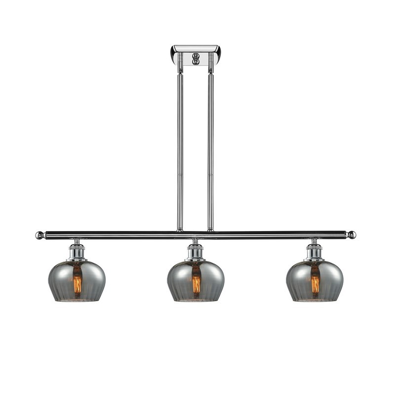 INNOVATIONS LIGHTING 516-3I-PC-G93-LED BALLSTON FENTON 36 INCH THREE LIGHT SMOKED GLASS ISLAND LIGHT, POLISHED...