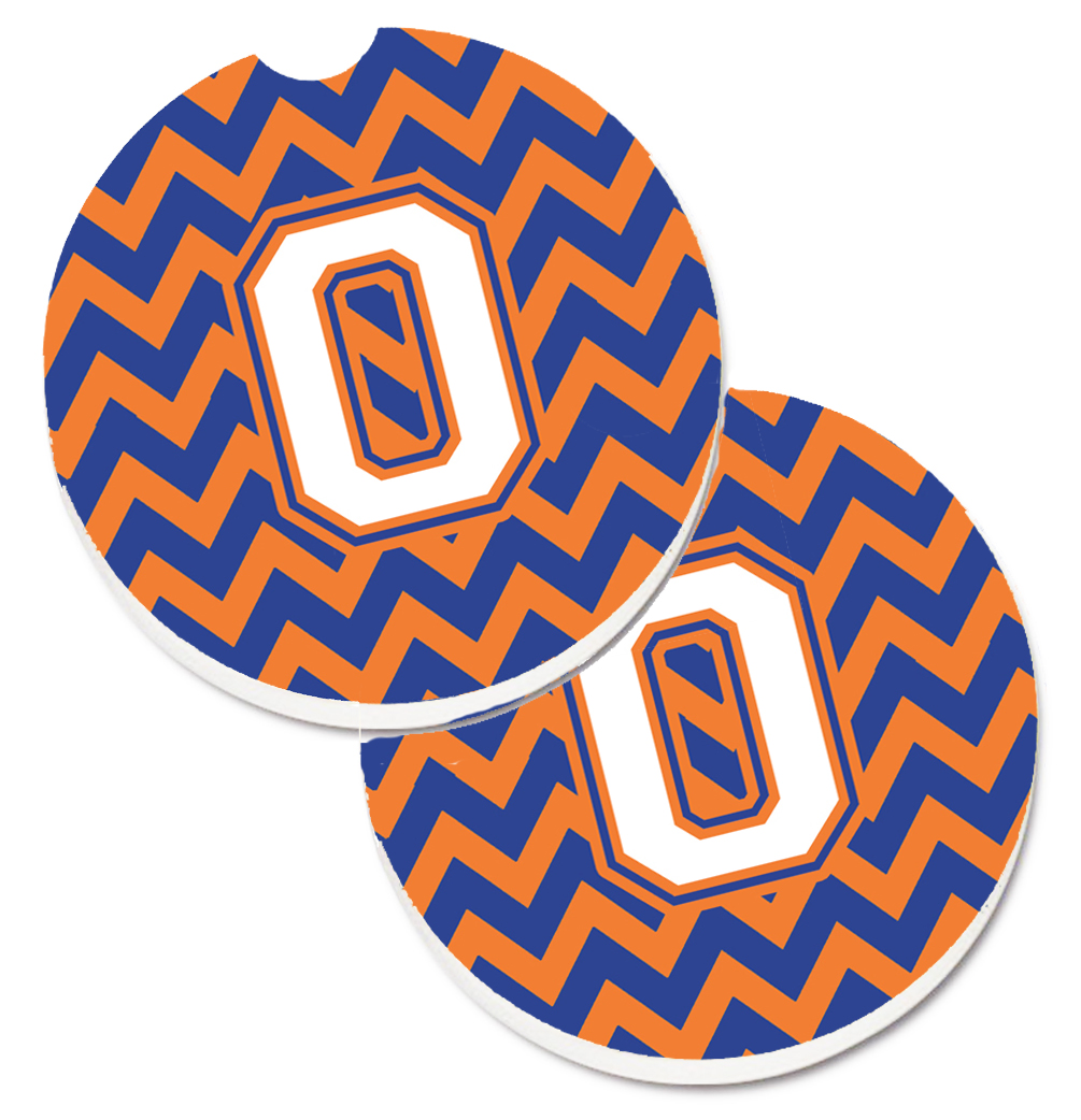 Carolines Treasures CJ1060-OCARC Letter O Chevron Blue & Orange No.3 Set of 2 Cup Holder Car Coaster