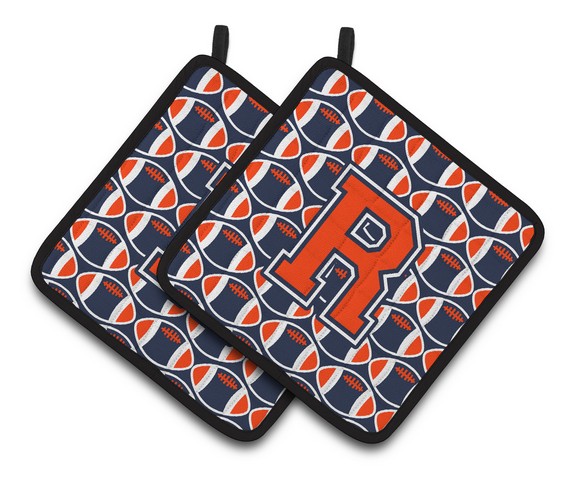 Caroline's Treasures CJ1066-RPTHD Letter R Football Orange, Blue and White Pair of Pot Holders, 7.5HX7.5W, Multicolor