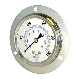 PIC Gauge PRO-204L-254A Glycerin Filled Industrial Front Flanged Panel Mount Pressure Gauge with Stainless Steel Case, Brass Internals, Plastic Lens, 2-1/2" Dial, 1/4" Male NPT, 30"/0 hg Vac psi