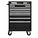 J4837 Rolling Cabinet 540S Series Heavy Duty Width 27 In. Depth 18 In. Height 42 In. Number of Drawers 12 Black Drawer Color Black Drawer Capacity 200 lb. Ball Bearing Full Extension Drawer Slides Gloss Finish Storage Capacity 9420 cu in. Load Rating 1800 lb. Caster Size 5 in x 2 In. Number of Shelves 0 Steel 18 Gauge Work Surface Material Steel Vinyl Caster Wheel Material Polyurethane Caster Type (2) Fixed with Lock (2) Swivel Heavy Duty Keys Easy Grip Steel Handles