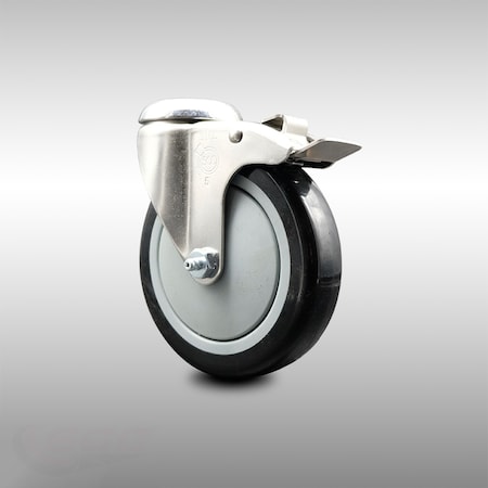 5 Inch 316SS Black Polyurethane Swivel Bolt Hole Caster with Total Lock Brake