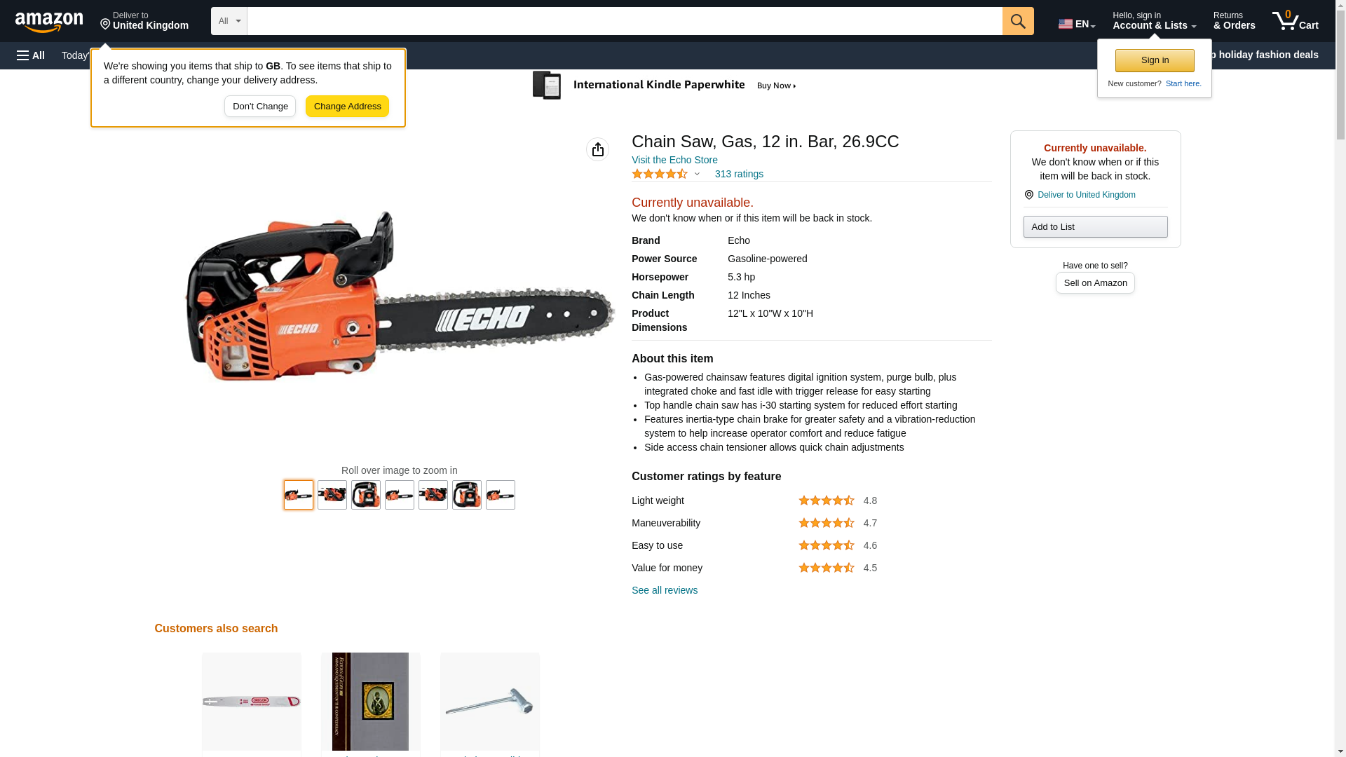 | Feature | Price For: Each Fuel Type: Gas Anti Vibration Handle: Yes Item: Chain Saw Chain Oiler: Auto/Aadjustable Includes: Chain Saw, Bar, Chain, Wrench, 2 Stroke Oil, Operators Manual Bar Length: 12" Fuel Type: Gas Fuel Tank Capacity: 8.1 oz. Engine Displacement: 26.9cc Anti Vibration Handle: Yes Replacement Chain: MFR. NO. 91VG45CQ Item: Chain Saw |
