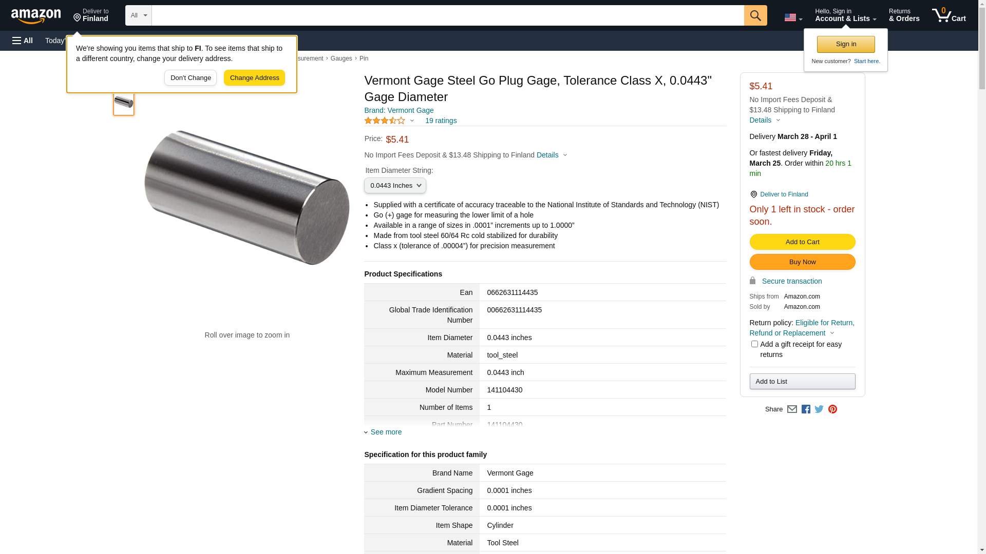 Vermont Gage .0443 Class X Go Plug Gage 141104430. ✅Vermont Gage authorized distributor ✅. ☎ (800) 884-5767 Mon-Fri 8:00 AM - 5:00 PM ET or order online 24/7