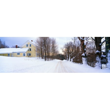 Panoramic Images Stretched Canvas Art - Farm Covered in Snow, Darling Hill Road, Lyndonville, Vermont - Large 36 x 12 inch Wall Art Decor Size.