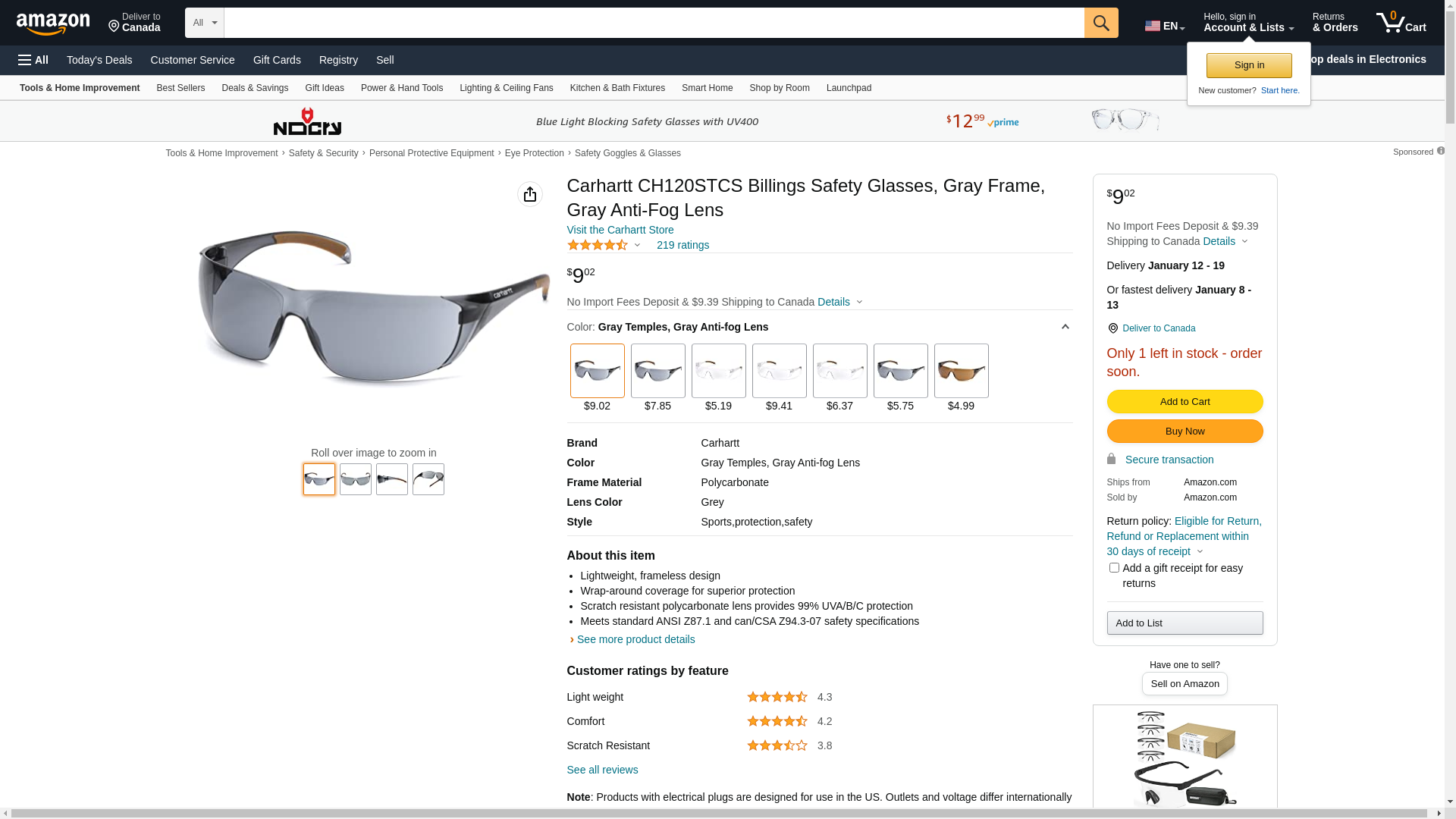 - Meets standard ANSI Z87.1 and can/CSA Z94.3-07 safety specifications