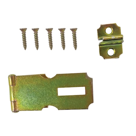 This is a security safety hasp. It is constructed of steel and comes in a zinc-plated finish making them corrosion resistant. Screw holes on hinge body are offset to help prevent wood from splitting. Installed properly the screws cannot be accessed or removed when the safety hasp is locked. These hasps are easy to install. All the necessary mounting hardware is included for a quick and easy installation (# 6 flat head tapping screws).<li>Hasp leaf and keeper are constructed of stamped steel materials to provide the strongest of security locking devices</li><li>All components come finished in a standard, corrosion resistant, zinc plated finish</li><li>Designed for use with doors on closets, storage rooms, doors, refrigerators, and more</li><li>Features concealed fasteners when in locked position to prevent tampering and easy removal</li><li>Easy to install with only a few simple tools</li><li>For further dimensional and specification information, please see the line drawing</li>