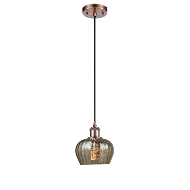 INNOVATIONS LIGHTING 516-1P-AC-G96-LED BALLSTON FENTON ONE LIGHT GLASS SHADE MINI PENDANT, ANTIQUE COPPER, LED