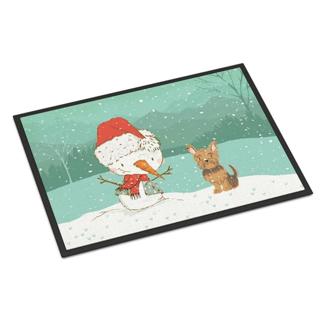 Carolines Treasures CK2098MAT 18 x 27 in. Yorkie Cropped Ears Snowman Christmas Indoor or Outdoor Mat