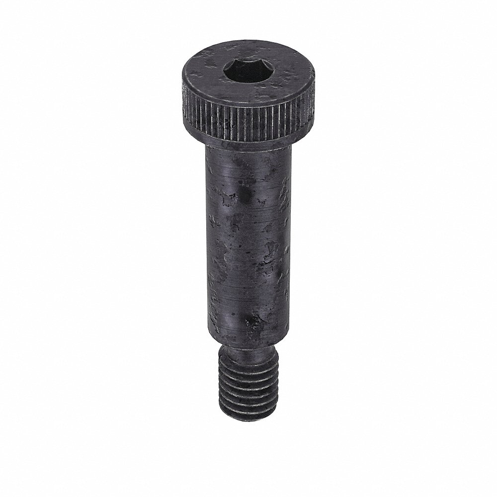 ' Shoulder Screw, Imperial, Alloy Steel, Finish Plain, Head Style Knurled, Thread Size 3/8-16, Drive Type Hex Socket, Drive Size 1/4 In., Shoulder Dia. 1/2 In., Shoulder Length 1-1/2 In., Thread Length 5/8 In., Head Dia. 0.729 In. to 0.750 In., Head Height 0.302 In. to 0.312 In., Screw Head Height 1/2 In., Min. Tensile Strength (PSI) 140, 000, Shear Strength (PSI) 84000, Class 3A, Rockwell Hardness 32 to 43 HRC, Meets/Exceeds ASME B18.3, Package Quantity 5 '