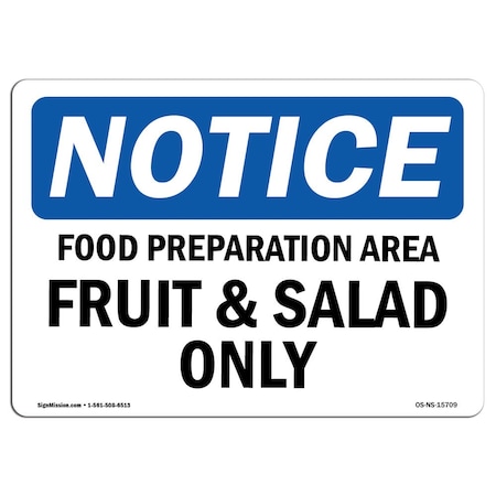 OSHA Notice Sign, NOTICE Food Preparation Area Fruit And Salad Only, 5in X 3.5in Decal