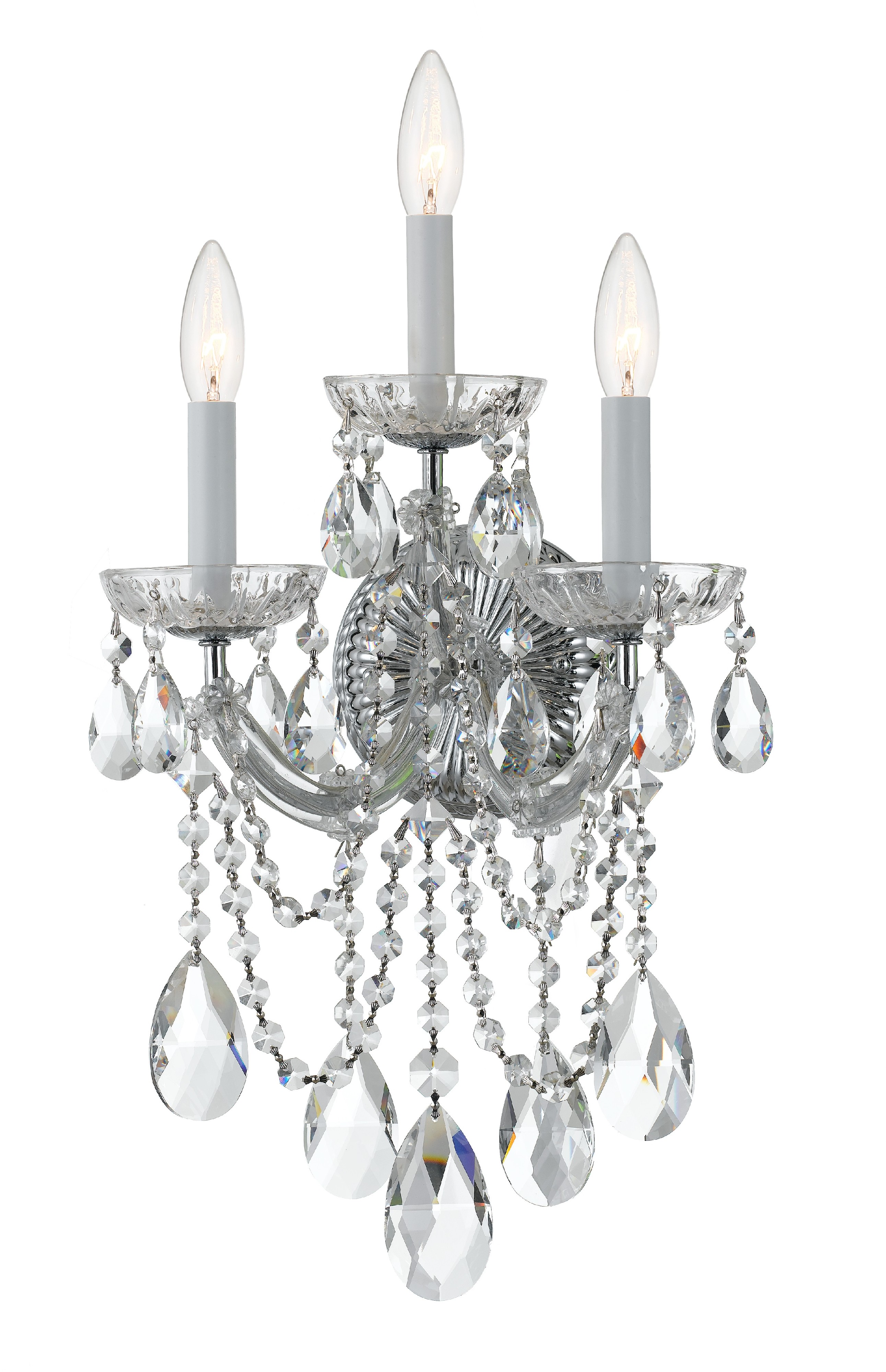 Maria Theresa 3 Light Hand Cut Crystal Polished Chrome Sconce : 4423-CH-CL-MWP | Brechers Lighting