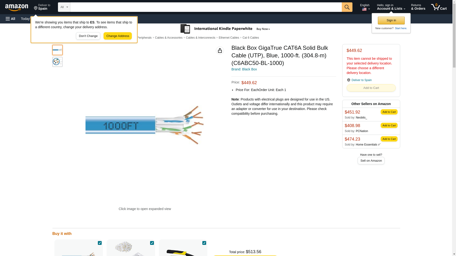 Black Box Cat6A 650-Mhz Solid Bulk Cable Utp Cmr Pvc Bl 1000Ft Spool - C6ABC50-BL-1000