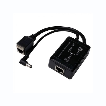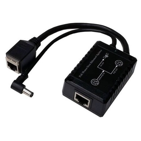 PoE Splitter. 48VDC 802.3af PoE input and passthru RJ45 Socket output. 24VDC 15W output on 5.5x2.1mm DC connector. 6 inch cables