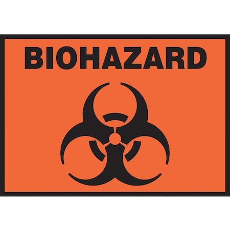 Accuform Signs 3 1/2" x 5" Adhesive vinyl "BIOHAZARD" safety label features permanent acrylic adhesive back with peel-off liner and is ideal for all-purpose labeling use, sold as 5 per pack. Accuform Signs 3 1/2" x 5" Safety label has black on orange "BIOHAZARD" text on a highly visible white background. Adhesive vinyl label features square corners and scored backing for quick peel-off application. Size: 3 1/2"(L) x 5"(W). Flexible 4 mil vinyl is for all-purpose labeling use. Legend: "BIOHAZARD"(with graphics). Language: English. Permanent acrylic adhesive back with peel-off liner. Vinyl is moisture- and tear resistant. Apply pressure sensitive back to clean curved or uneven surfaces. Square corners and scored backing for quick peel-off and application. Printed matte surface with permanent acrylic adhesive. Complies with OSHA 29 CFR 1910.145 and ANSI Z535 requirements. Warranty: 30 days limited. Safety Label.004" thick Adhesive Vinyl. 5/PK.