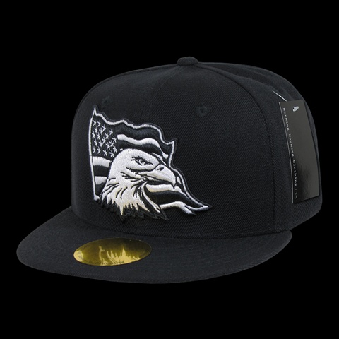 Decky N14-USA-BLK Flat Bill Eagle Caps, USA, Black