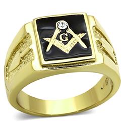 Alamode TK1159-11 Men IP Gold Stainless Steel Ring with Top Grade Crystal in Clear - Size 11