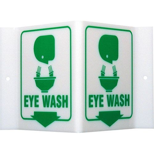 Brady V1EW03A V Eye Wash Sign - Acrylic, High Visibility V-style - Green on White - 6 x 9