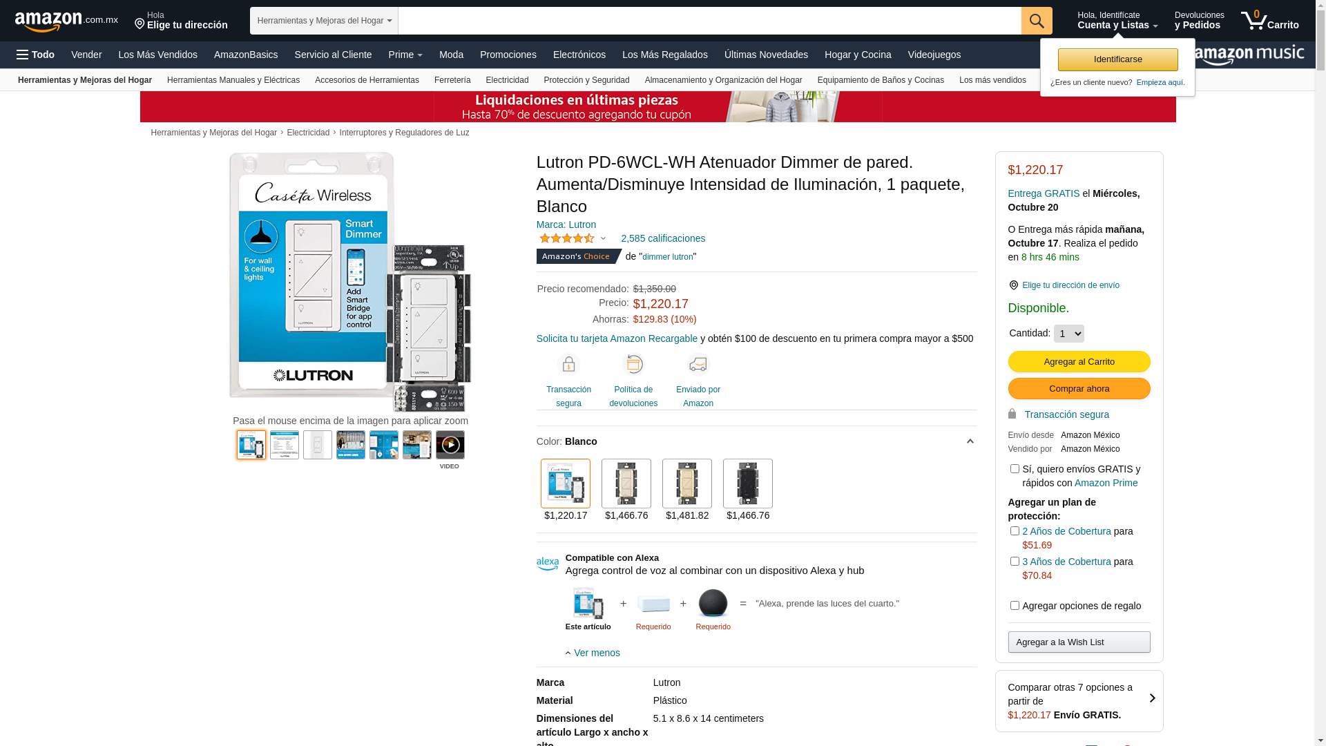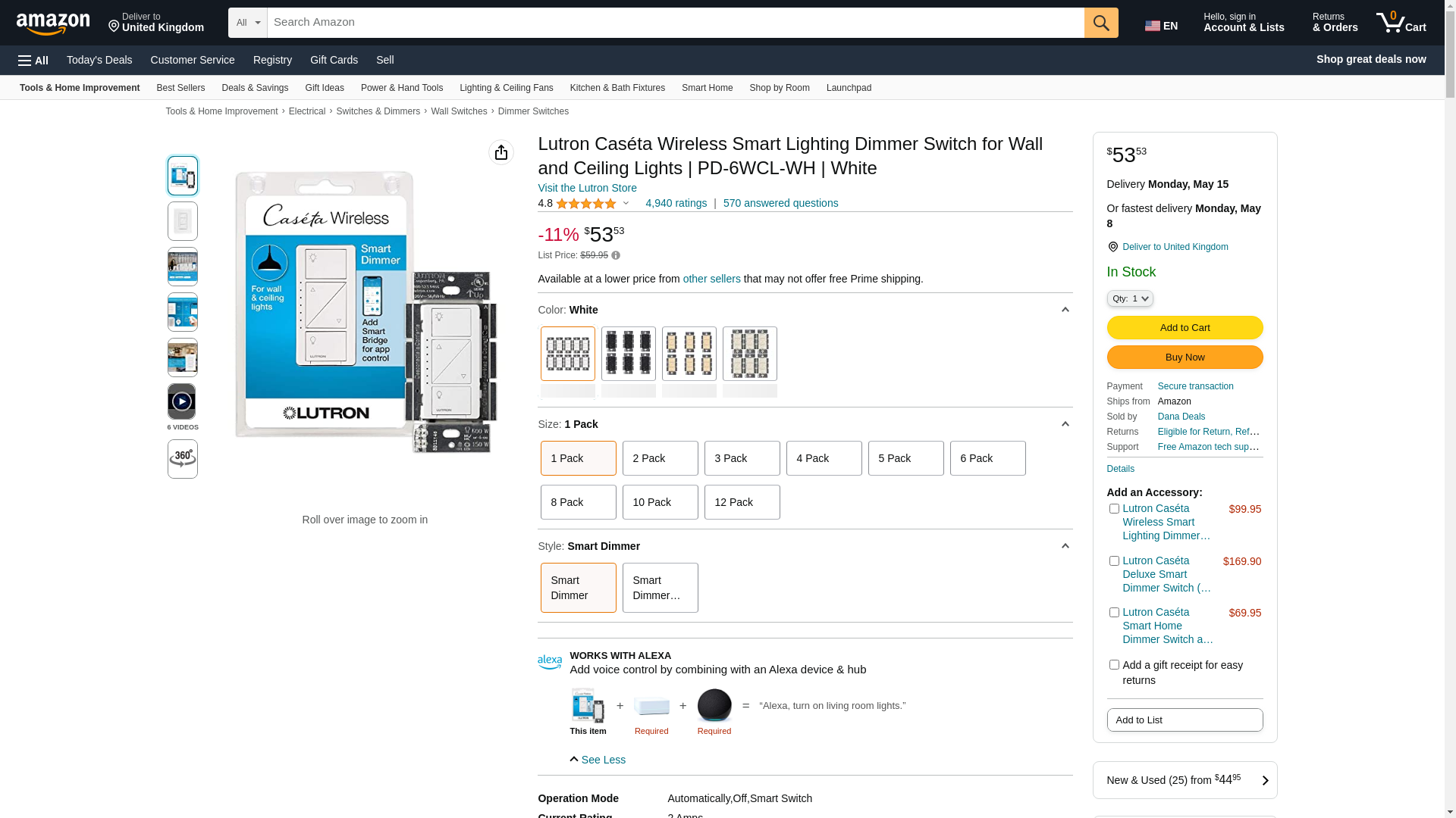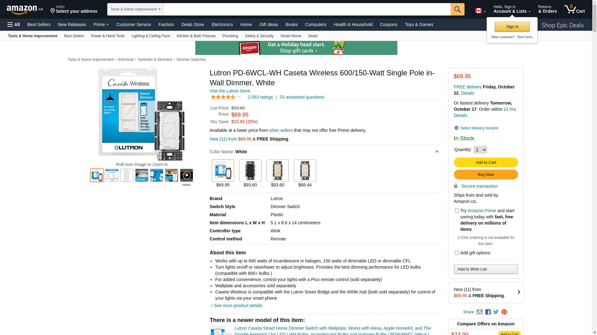 ![]() electricbargainstores.com | LUTRON-PD-6WCL-WH | 1 | Usually Ships in 3-5 business days. Urgent Project | 1 | |
